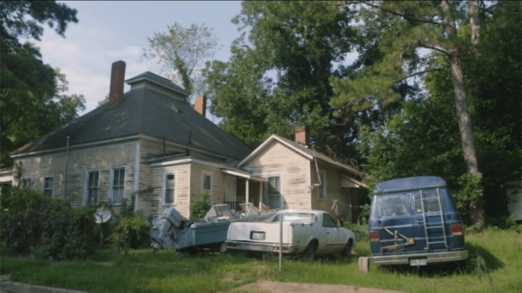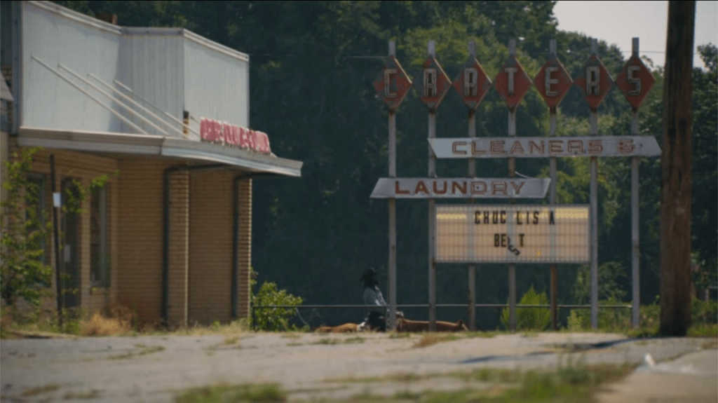 Voici pour le synopsis officiel de P-Valley, feuilleton où l′esthétique revendiquée du film noir s′impose à la fresque sociale. En introduction, la série prend en effet le temps de décrire, par petites touches, en brefs travellings, le paysage désolé d′une bourgade dénommée Chucalissa (1) avec ses maisons en ruines, ses petits commerces de survie et sa population à l′abandon. Nous sommes dans le « Dirty Delta », le delta du Mississipi.