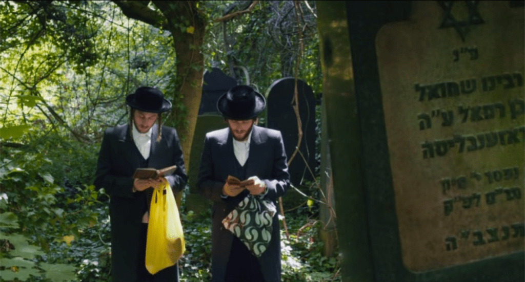 Mais il y a les manques, rapidement camouflés. On a un peu pitié de Yanki, le mari abandonné, parce que l′on sent que lui non plus n′a jamais été libre de ses choix et qu′il est terrorisé par le mariage tout autant que sa future épouse. On aurait aimé aussi en savoir davantage sur le père alcoolique d’Etsy, vite escamoté dans une scène étrange où il apparaît derrière un tulle, effleurant presque son ex-femme, au tout début du mariage. On aurait été apprécié de passer un peu plus de temps dans le cimetière juif de Berlin aux côtés de Yanki et de son cousin. Aussi caricaturaux soient-ils, ils nous est impossible de penser qu’ils ne faisaient là que du tourisme.