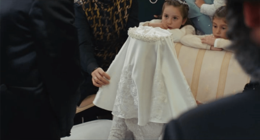 Cette fin heureuse n’efface pas la dureté des épreuves passées. En plus de l′adaptation à de nouvelles règles de vie, de la nécessité de fuir les deux hommes qui la traquent maladroitement, de la difficulté de communiquer avec sa mère et du rejet de sa grand-mère qui l′a élevée, des flash-backs rappellent ce à quoi elle échappe : sa vie à New York, avant, pendant son mariage et au cours de l′année qui suivit. À la cérémonie du mariage elle-même, le téléfilm consacre une si longue séquence que l′on bascule presque dans le documentaire.