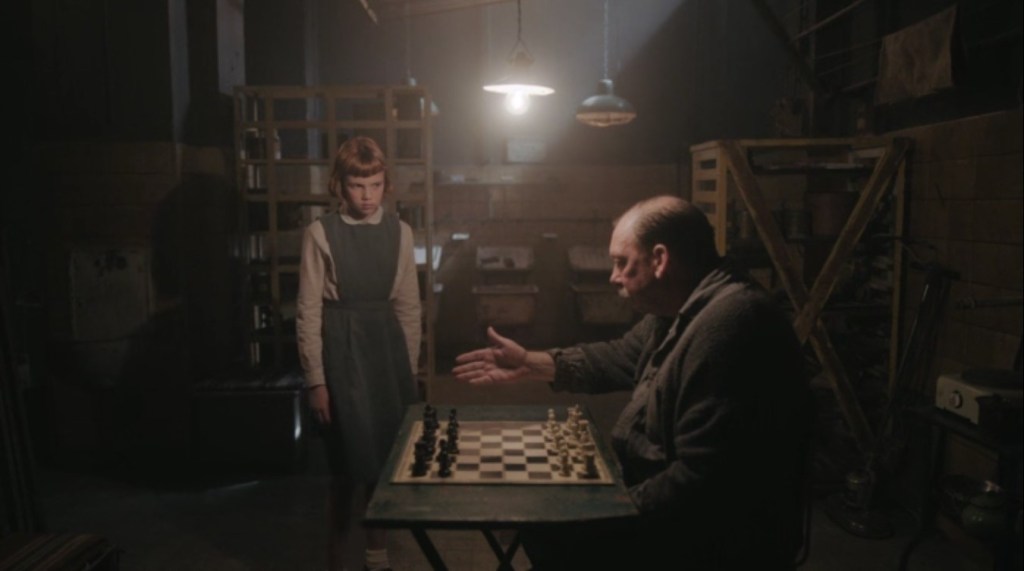 La séquence finale montre une Beth réconciliée avec le monde. Plutôt que de rentrer immédiatement aux USA après sa victoire sur le champion du monde Borgov, elle prend le temps de se mêler à la petite foule des joueurs amateurs dont les tables s’alignent dans les parcs et sur les promenades moscovites. Elle propose une partie à ces admirateurs enthousiastes, juste pour le plaisir du jeu, juste pour partager un peu leur chaleur humaine. Sans autre enjeu que d’être ensemble.