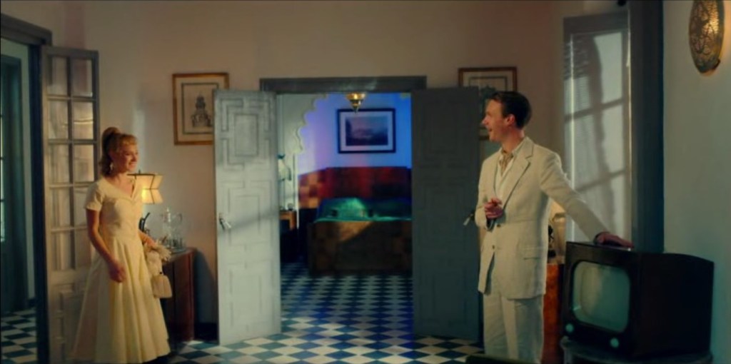 La présentation que fait Canal+ de la série adopte un ton superlatif : “ Créée par Sophia Al-Maria, Little Birds jouit d’un univers très singulier, où chaque élément est sublimé par une photographie flamboyante et sophistiquée. La beauté des décors est envoûtante, la chaleur des images ensorcelantes et les couleurs vives viennent offrir une intensité particulière à ce monde de plaisirs. Réalisés par Stacie Passon (Les Chroniques de San Francisco, The Punicher), les six épisodes racontent lubricité et hédonisme avec une élégance et un raffinement redoutables. De quoi s’évader dans l’inconnu marocain, avec un charme certain. ” L’auteur de ce panégyrique, qui a dû faire ses gammes dans une agence de voyages, a eu l’intuition de ne parler que d’image et de ne pas s’aventurer du côté du récit. Il n’a pas eu tort. Dès la première image, la série vous crie qu’elle est “ flamboyante et sophistiquée ”. Dès que possible, le cadre délaisse l’horizontale, une profusion de couleurs chatoient sur l’écran, pas un espace n’est laissé vacant. Les décors se limitent à quelques intérieurs : l’appartement de Hugo, un bar, la maison de la comtesse, la résidence du Secrétaire, une maison à la campagne et très peu d’extérieurs. La musique, elle-aussi, est un patchwork de citations.