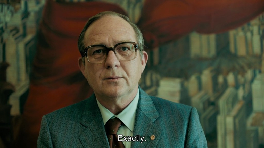 Cette ligne narrative offre l’indispensable contrepoint tragique à des aventures rocambolesques que l’on ne peut prendre totalement au sérieux. Le ton général nous pousse en effet à sourire de personnages, en particulier les membres du comité spécial de la HVA, caricatures assez réussies de bureaucrates des pays de l’Est. Le ton est donné au travers de la simple comparaison entre l’apparatchik rondouillard et peureux dénommé Markus Fuchs (« Renard », à gauche ci-dessous) qui préside la HVA en lieu et place du réel Markus Wolf (« Loup », à droite), le grand félin qui dirigea l’espionnage est-allemand durant toute la guerre froide et auquel John Le Carré rendit hommage à sa façon.