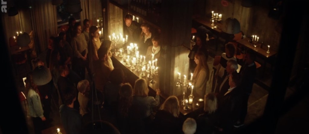 Il y aurait d’ailleurs une autre façon de parler de la même chose en ne considérant que les images, de ce que l’on a réellement vu au cours de ces dix épisodes de presque une heure. En y repensant, on se rend compte en effet qu’en dix heures on ne sait pas grand-chose de Copenhague et qu’on serait bien en peine de dire à quoi ressemble cette ville. On a vu des visages, des personnages en gros plans, on est toujours restés proches d’eux, plan rapproché, plan taille, plan poitrine, mais Copenhague ? Est-ce que la ville elle-même n’avait aucun rôle à jouer ? Et quand je dis « la ville » je parle bien évidemment de la population de la ville autant que de son urbanisme, de sa circulation, de son atmosphère, de la pluie, du vent… Nicolaj vante son restaurant en rappelant qu’il est situé à proximité de la sortie du métro, mais on ne voit ni n’entend jamais ni l’entrée du métro ni le métro ni la foule des gens qui rentrent du travail en métro. Le problème est donc bien celui de la représentation d’une population dans le cadre d’un discours clairement politique. La synchronicité introduite par le récit choral et revendiquée par des auteures qui parlent de connexion plutôt que de conflits efface abusivement les contradictions sociales.