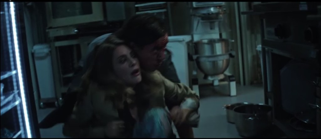 Ce dernier point – la solidarité collective – prend une teinte particulière lors de deux moments cruciaux : le geste irrationnel de Louise qui, puisant dans un gobelet l’eau du bénitier de l’aumônerie de l’hôpital veut absolument baptiser sa fille en danger de mort alors qu’elle s’est déclarée athée quelque temps plus tôt et le très bref plan final où l’on voit les employés et la clientèle du restaurant se recueillant autour un « autel » surmonté de bougie dans une communion collective. On y reviendra.