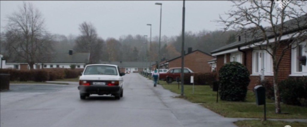 C’est donc pourquoi lorsque l’on voit la petite Helén quitter le domicile familial par une soirée de mars, chaque véhicule, chaque personne présente dans le décor, chaque détail de son parcours, qu’elle traverse la rue ou qu’une Volvo blanche ralentisse en approchant d’elle, se range immédiatement dans notre rubrique mentale « témoins et témoignages ». Le passage devant une fenêtre de cette Volvo blanche aperçue dépassant Helén au plan précédent non seulement lie très classiquement les deux plans mais il inscrit aussi dans nos mémoires que le couple attablé devant son petit déjeuner et surtout le mari qui, à cet instant, jette un œil au dehors, pourra témoigner qu’une Volvo blanche est passée dans la rue cette heure précise. Il n’y a plus de personnages, mêmes secondaires, il n’y a que des témoins qui ne le sont pas encore, un tueur en devenir et une petite fille qui bientôt ne le sera plus.