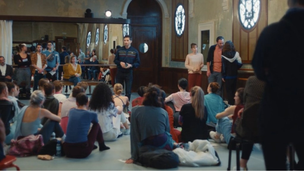 À hésiter entre l’allusion et la citation, la fictionnalisation et la « documentarisation », autrement dit la métamorphose par la fiction et l’affrontement avec le réel, la série tombe dans les ornières de la mise en scène comme ces « walk and talk » (marche et parle) popularisés à l’excès par les séries américaines et qui sont ici dédiés au seul Sébastien Cheneau, suivi comme son ombre par une Tiphaine qui lui énumère ses rendez-vous à venir. Le patron va où il veut, l’espace lui appartient, il en est le maître des lieux quand le salarié, lui, reste cantonné à son poste, les salles de répétition et la scène en ce qui concerne les danseurs, la régie et les cintres pour les techniciens. On ne peut plus clairement énoncer les conflits de classe, encore faudrait-il éviter de recourir à des clichés. À force de se répéter, ces travellings arrière à la steadycam censés apporter de la vivacité à une séquence deviennent des transitions faciles, des bouche-trous, des façons de combler ce qui manquerait.
