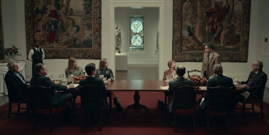 Les différentes époques sont habilement mêlées, avec des repères de dates discrets qu’on ne fait que remarquer, sans fournir réellement l’effort de reconstituer mentalement la chronologie. En réalité, le principe adopté par les scénaristes a été de mettre tous les personnages en action en même temps, de les synchroniser, si l’on peut dire. Selon Danny Strong, le créateur de la série, un respect de la véritable chronologie aurait déporté l’intervention des adjoints du procureur à l’avant-dernier épisode, par exemple, bien trop tard pour une série en 8 épisodes. Cette condensation qui réunit artificiellement le passé, le futur et le présent est si bien travaillée que les allers-retours dans le temps entre les divers personnages paraissent parfaitement naturels. Les stratégies trompeuses de la famille Sackler, leurs conséquences dramatiques et les efforts de la justice apparaissent à tort comme contigus alors que des années se sont écoulées. Ceci amène à s’interroger sur les problèmes éthiques ou même simplement narratifs que pose la réduction des séries à 6 ou 8 épisodes lorsqu’on en vient à accélérer la succession des faits et à créer des relations artificielles entre les évènements. La soumission à la dynamique de l’action – c’est-à-dire au spectacle – au détriment du déroulement réel des faits pose la limite du genre docu-fiction.