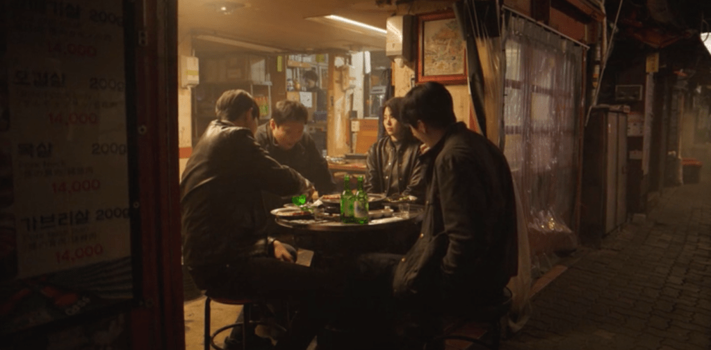 Mais, au-delà de son sexe, le personnage de Yoon Ji-woo intrigue par l’énigme qu’elle représente. Avare de mots, le visage le plus souvent inexpressif, elle n’est longtemps qu’un masque pâle et soyeux. Un masque impénétrable qui occulte au regard d’autrui sa soif de venger un père auquel elle sacrifie tout : sa vie, son nom, sa réputation, comme elle l’avoue, un jour. Elle n’est rien en dehors de cette pulsion. Elle n’a bien évidemment aucune relation sociale et se satisfait d’un logement spartiate. Un collègue, qui s’y introduit un jour, constate qu’il est totalement dépouillé de mobilier comme de nourriture, mis à part quelques bouteilles d’eau. Je crois même qu’on ne la voit jamais manger, y compris lorsqu’elle est au restaurant avec des collègues. Elle se contente de boire de petits verres de sotu (3). Ce retrait de la vie commune qui l’empêche de consommer la nourriture ordinaire, de vivre comme les autres, comme c’était le cas avant le meurtre de son père, confortent la marginalité vis-à-vis de la communauté humaine que lui assigne le serment qu’elle s’est fait. Les mots que Sophocle met dans la bouche d’Elektre expliquent le rôle qu’elle s’est attribué : « Car si le mort, n’étant rien, gît sous terre, si ceux-ci [les assassins] n’expient point le meurtre par le sang, toute pudeur et toute piété périront parmi les mortels. » Si Yoon Ji-woo, ne venge pas son père, nous tous, les mortels, perdrons notre humanité parce que nous n’aurons pas défendu ce qui la fonde : le respect des morts et la piété filiale.