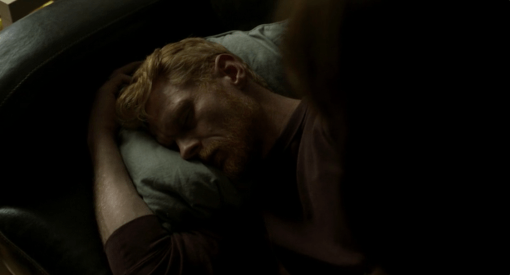 Jusqu’au trois quarts du sixième épisode le beau-père n’est qu’un grand costaud au tempérament sanguin, capable de s’emporter à la seconde, mais guère plus. Certes, il a le physique de l’emploi, immensément grand – il dépasse sa femme de plus d’une tête – roux et barbu, tout en muscles, prêt à s’emporter à la moindre occasion, il suffit qu’il prenne l’air fâché pour que l’on s’inquiète. Ce n’est qu’à la fin du sixième épisode qu’on nous suggère qu’il pourrait être un mari violent. L’assistant social, lui, a forgé sa conviction dès la première minute : ses deux condamnations passées pour voies de fait lui ont suffi à classer l’individu. S’il ne bat pas sa fille, c’est donc qu’il bat sa femme.