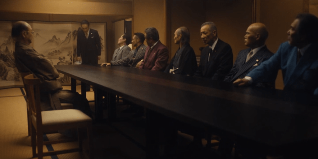 La façon dont ces derniers sont présentés relève certainement du cliché. Leur idéologie d’extrême-droite ultra-violente est gommée au profit d’un traditionalisme rigoureux. Tout comme la mafia sicilienne a ses « hommes d’honneur » les gangs japonais prétendent se porter garants des traditions ancestrales, à l’encontre d’une société qui s’occidentalise et se sécularise. Et c’est pourquoi, comme dans tout film sur la mafia, on assiste à l’affrontement entre la vieille génération attentive au respect du code moral et des oyabuns (3) et la jeune garde, impatiente de briser les règles et de s’arroger le pouvoir. Cette dernière est incarnée par Tozawa, le chef d’un gang extérieur à Tokyo qui cherche à s’approprier le territoire du clan Chihara-Kai, dirigé par le vieux Ishida. Les scènes de la vie des yakuzas ne diffèrent guère de celles de n’importe quelle mafia, même brutalité, même appétit du gain, même indifférence aux souffrances infligées, même code de l’honneur suranné, même collusion avec les politiciens (4) et même étouffoir en vigueur dans la presse et les milieux politiques (5).