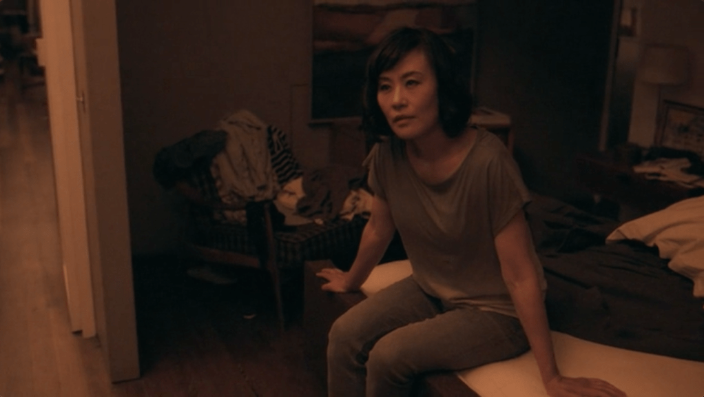 Si son souvenir hante la série, Assayas y revient en effet plus intensément au travers d’une scène somnambulique où René croit découvrir Jade chez lui, au beau milieu de la nuit. Ils parlent de leur amour qui, pour lui, s’estompe et qui, pour elle, a toujours été bancal. Désormais, tous les deux s’évitent à distance pour ne pas risquer de raviver leurs souvenirs. Elle lui reproche d’avoir donné le rôle d’Irma Vep, « son » rôle, à une autre. Il répond qu’il lui a écrit pour lui en parler. Le fantôme de Jade n’insiste pas et disparaît le temps que René aille prendre une cigarette.