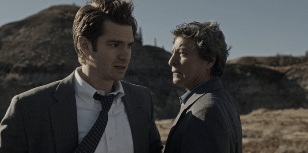 Under the banner of Heaven n’est pas un réquisitoire contre le Mormonisme puisque la victime du meurtre qui déclenche le récit de l’enquête est mormone et que l’enquête est menée par l’inspecteur Pyre (Andrew Garfield), lui aussi mormon. L’objet de la série est plutôt de retracer la longue et pénible remise en cause de la foi de ce jeune policier à l’épreuve des faits.