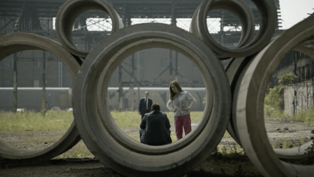 Tout ceci n’empêche pas une réelle cinégénie. Beaucoup de plans sont remarquables, soit du fait de leur composition colorée, soit pour leur mouvement de caméra et la mise en scène qui lui est associée comme par exemple dans ce très lent et quasi-insensible travelling avant où l’on voit John assis dans sa buse préférée, quelque part sur le terrain vague de l’usine, écouter tous ses collègues venus lui parler les uns après les autres, en une sorte de ballet.
