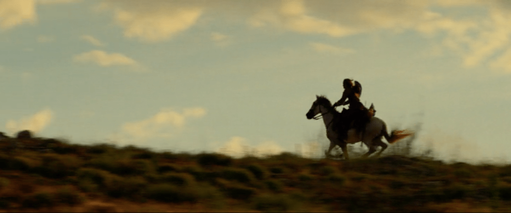 Dans The English, les personnages entrent en scène les uns après les autres en une suite de tableaux aussi superbes qu’intenses. Je parle de tableaux parce que le récit se découpe en une succession de petits récits souvent parallèles et presque autonomes. Cette écriture exige du spectateur une attention continue que quelques flash-backs, à la mode d’aujourd’hui, tentent de prendre en défaut. Que l’un de ces tableaux manque, ne dénaturerait pas la totalité de l’histoire. Il arrive aux scénaristes eux-mêmes de perdre en route quelques personnages telle la jeune éleveuse volée par les cow-boys de Thomas ou Thomas lui-même.