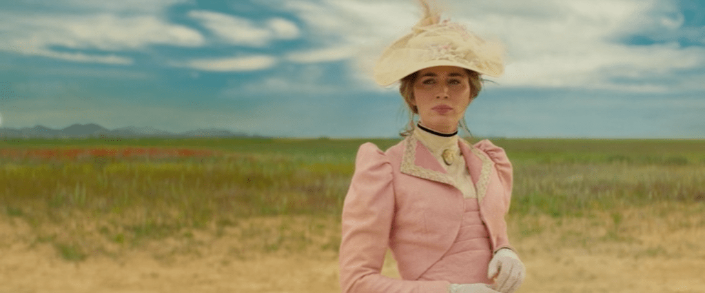 The English se déroule dans le Wyoming, le Kansas et les États des alentours, en 1890, à l’époque héroïsée par les westerns, c’est-à-dire entre la fin de la Guerre de Sécession et l’arrivée des automobiles. On y trouve tout ce que décrit Bazin – et que je viens de brièvement résumer – mais renversé cul par-dessus tête. L’héroïne s’appelle Cornelia (Emily Blunt), c’est une aristocrate anglaise donc a priori une proie facile pour les hors-la-loi qui pullulent dans la région. Mais cette championne de tir à l’art et cavalière émérite sait se défendre. Le périple qu’elle a entrepris pour retrouver Thomas, son fiancé, parti tenter sa chance en Amérique s’alimente d’une fascination pour le Wild West, l’Ouest sauvage. Son alter ego est Eli (Chaske Spencer), un Pawnee ex-éclaireur de l’armée américaine, donc supplétif des envahisseurs qui massacrent ses congénères. Indifférent à ce qui ne le concerne pas directement, il ne bouge pas le petit doigt pour soutenir une tribu cheyenne qui se font exterminer. Ne comptent à ses yeux que les individus qu’il estime. Eli est un isolationniste social, solitaire obstiné, indifférent à la cause indienne certes, mais exceptionnellement solidaire des individus qu’il estime. Des cow-boys solitaires, le western en est peuplé, comme le film noir de détectives asociaux.
