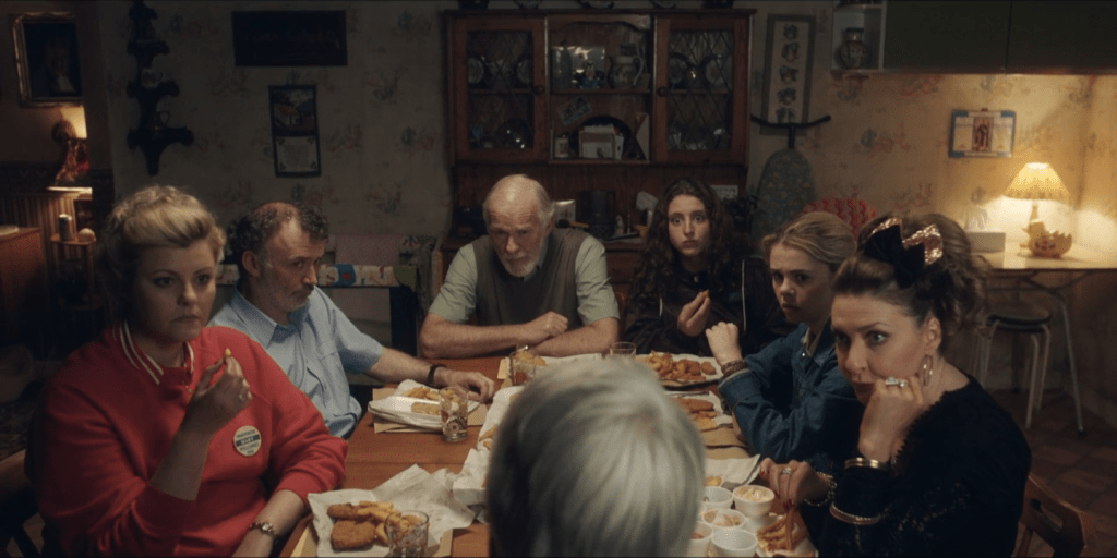 La famille d’Erin, elle, est composée de sa matriarche de mère, Mary, du grand-père Joe et de son souffre-douleur de gendre, Gerry, ainsi que d’une tante Sarah (la mère d’Orla) essentiellement préoccupée par la couleur de ses ongles ou de son rouge à lèvres.