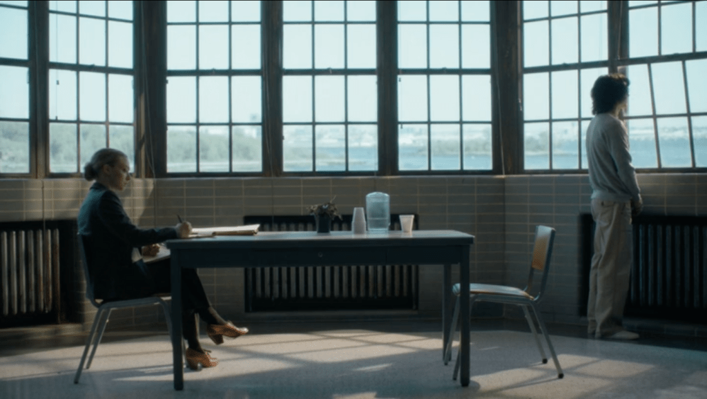 Tel n’est pas le choix, bien évidemment d’Akiva Goldsman, l’auteur de The Crowded Room qui, lui, a besoin de personnages et d’une narration où les faire évoluer. Pour cela, il place Danny et la psychiatre Rya Goodwin de part et d’autre d’une longue table dans un décor lumineux, sobre et élégant., qui n’a rien à voir avec une salle d’interrogatoire mais qui servira de repère fixe au récit morcelé des souvenirs de Danny.