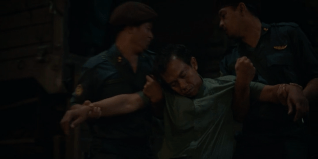 Nous sommes déjà en 1964-65, quand, sous prétexte d’une tentative de coup d’État communiste, l’armée met à bas la Nasakom, l’improbable alliance voulue par le président Soekarno qui réunit nationalistes, musulmans et communistes et liquide ces derniers. Elle commet alors l’un des pires massacres du XXe siècle puisque l’on chiffre les victimes entre 500 000 et 3 millions. À cela s’ajoute le million d’emprisonnés sans procès, les innombrables scènes de torture et les représailles sur les familles. La famille Idoes est saccagée sur fausse dénonciation de Djagad. Le père est tué, Dasiyah elle-même est longuement emprisonnée. Beaucoup souffrent, une minorité profite, tout ce que l’humanité peut avoir de plus détestable s’épanouit.