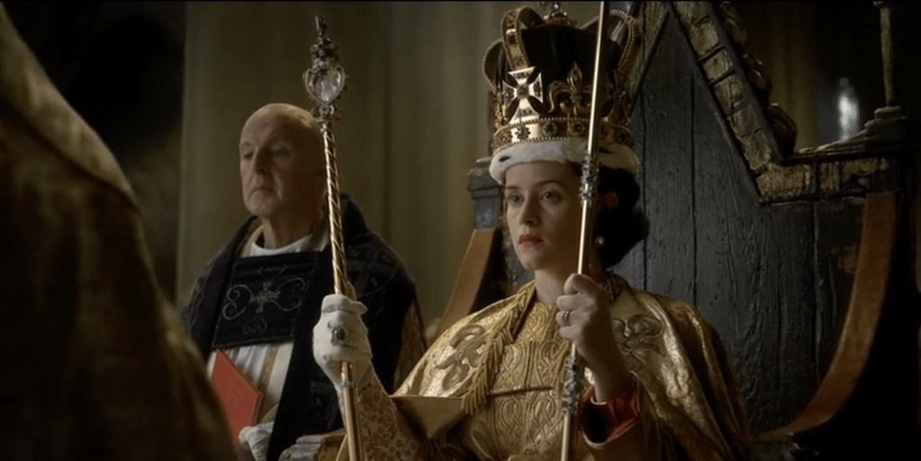 Cette dualité des personnages et le conflit qui résulte de la coexistence des sentiments personnels et du devoir imprègne toute la série. Comme l’écrit la vieille reine Mary à sa petite fille peu avant son couronnement : « La fidélité à l’idéal dont tu as hérité est ton devoir suprême, car la vocation vient de la source la plus haute, de Dieu lui-même ». Plus tard, des commentaires désobligeants sur les monarchies « d’apparat », comme les cousines scandinaves, confirment le sens du sacré attaché à la couronne britannique. Il ne s’agit pas ici de justifier une morale mais de faire comprendre ce qu’elle représente pour ceux qui en sont les héritiers et qui ne va pas, pour eux-mêmes, sans contradictions ni contraintes.