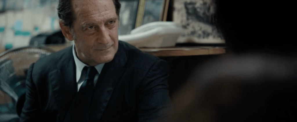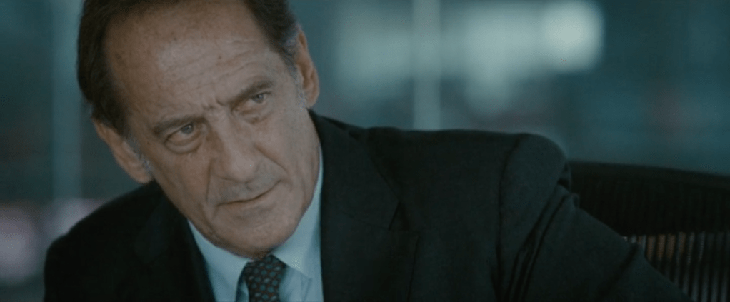 D’argent et de sang raconte cette affaire scandaleuse en usant d’une pédagogie efficace à défaut d’être originale. Dans le rôle de Simon Weynachter, le magistrat à la tête du Service National de Douane Judiciaire nouvellement créé (7), Vincent Lindon témoigne devant deux juges au sujet de son enquête sur la fraude à la taxe carbone. Ses propos sont illustrés de flashbacks qui font alterner les moments de l’enquête et les aventures des criminels. Le « poids » dramatique de Vincent Lindon impose sa narration comme une évidence. Son verbe seul suffit à nous faire comprendre un sujet techniquement complexe et ressentir tous les niveaux, criminels, sociaux, affectifs, émotionnels d’une phénoménale escroquerie qui bouleverse de fond en comble la vie de ses protagonistes. Et c’est une prouesse.