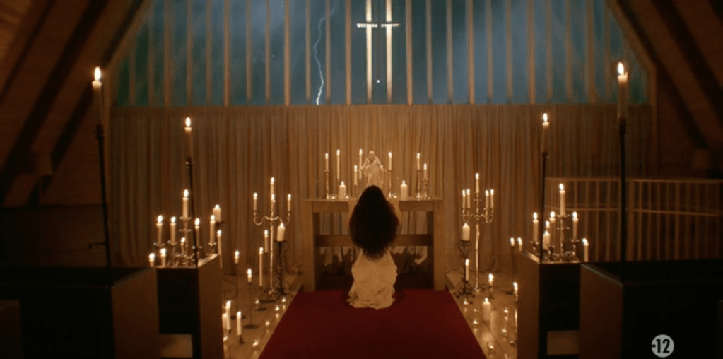 On ressent son incompréhension abyssale et son besoin existentiel d’être absoute de péchés dont elle ignore la nature. Les scènes nocturnes, dans le sous-sol où elle est reléguée, baignant dans la pénombre, nous montrent une Anna désespérément seule. C’est le moment choisi par Sindre pour lui fait comprendre que Mikaela a achevé son rôle sur Terre et qu’il faut l’aider à « revenir à la maison », c’est-à-dire auprès de Dieu.