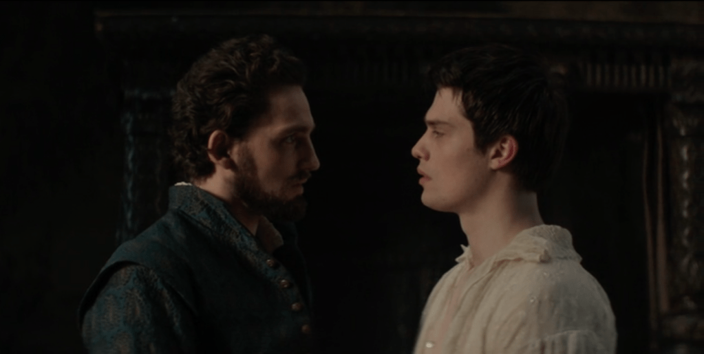 Comme Henri III, en France, quelques années plus tôt, Jacques Stuart est connu pour avoir entretenu une cour de favoris, ceux que l’on appelait les « mignons » du roi, de ce côté de la Manche. Cela ne l’a pas empêché d’avoir 8 enfants avec sa femme Ann de Danemark, ce qui laisse penser qu’il était bisexuel. Cet aspect de sa vie affective et sexuelle est la matière première de la série puisqu’on y suit l’ascension de George Villiers sous la férule de sa mère, d’abord jusqu’à l’intimité du Roi puis jusqu’aux plus hautes sphères de l’État en usant de ses charmes. Sa mère, elle-aussi, cultive les amours homosexuelles. Lorsque sa future amante lui demande si elle a déjà fait l’amour avec une femme, Mary lui répond froidement : »Un corps est un corps ». On comprend que la Renaissance avait gardé de l’Antiquité une grande souplesse vis-à-vis du désir charnel. Il suffit de lire Les dames galantes de Brantôme (1) pour en goûter les subtilités.