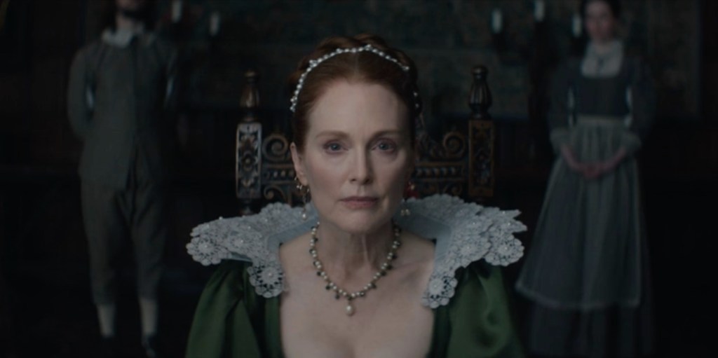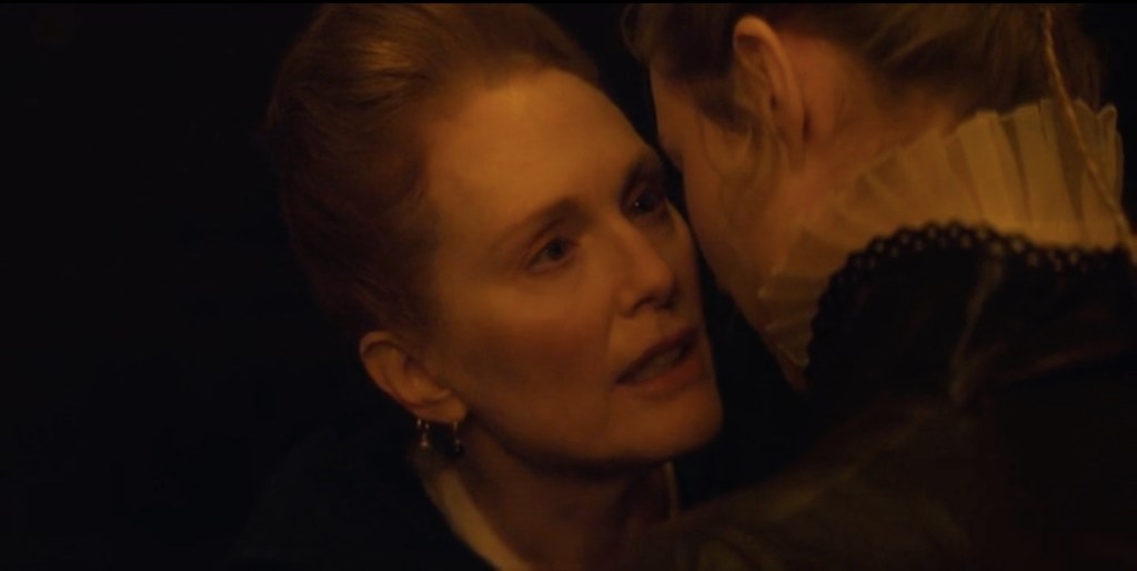 Il suffit d’écouter les dialogues ! Un texte d’une telle qualité et des acteurs aussi talentueux à son service mériteraient la nudité des planches. Voilà du grand théâtre et donc de la grande télévision ! Comme Welles ou Guitry ont fait du grand cinéma avec du grand théâtre ! Oui, le décor passe au second plan et il faut se contenter pour l’essentiel des intérieurs dégarnis de châteaux élisabéthains. Les rares vues de rues londoniennes ou de paysages ruraux se font à l’extrême économie, et c’est le moins que l’on puisse dire. Qu’on revoie Othello, le film de Welles sans doute le plus fauché, le plus minimaliste et l’un des plus poignants… Dans Mary & George, les mouvements de caméra s’effacent devant des cadrages sans emphase, quoique parfois étonnants, les mouvements de foules sont suggérés, nous sommes au théâtre. L’image est la servante des dialogues.