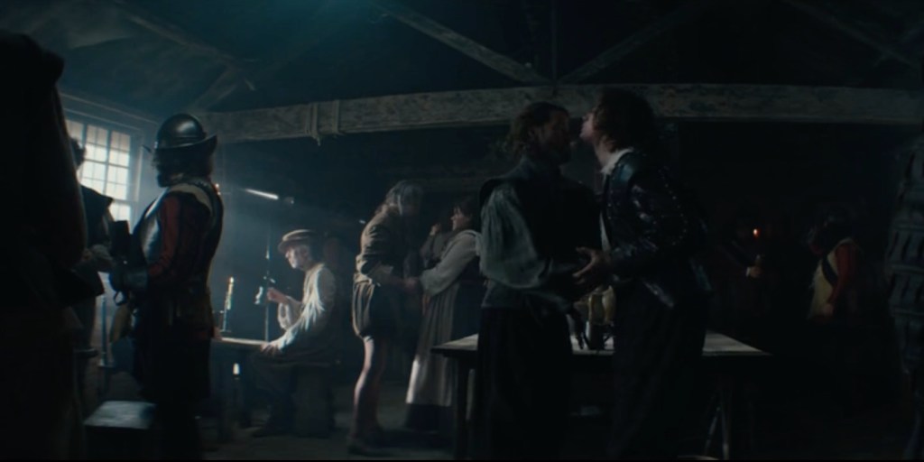 Du régicide ou saute au Règne de Charles II et au terme des aventures militaires catastrophiques du Duc de Buckingham, finalement assassiné dans un pub par Fulton, l’un de ses officiers, à Portsmouth le 23 août 1628. On ne voit rien de ces expéditions, seul un dialogue, celui de Fulton avant d’enfoncer sa lame, nous explique ce qu’il y a à savoir. George disparaît dans des circonstances sans guère d’intérêt puisque la série n’en traite pas. Son meurtre passe pour la banale punition de son régicide. Or, Prendre un épisode pour narrer ses batailles perdues aurait achevé son portrait. Sans la défaite, George n’atteint pas l’envergure dramatique qu’il aurait méritée et que possèdent sa mère Mary et le roi Jacques Ier. Tout du long, il reste leur instrument, leur monnaie d’échange. Une fois lâché seul dans le vide de son existence, il s’écrase au sol. Tout bêtement. Mais peut-être ne valait-il pas mieux, ce Duc de Buckingham qu’aima tant notre Anne d’Autriche.