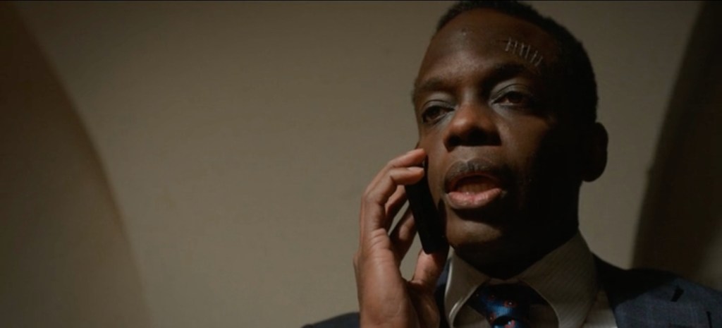 Billie Appiah (Nana Mensah), la chef de cabinet du président s’entretient avec Stuart Heyford (Ato Essandoh), le directeur de cabinet de Kate Wyler.