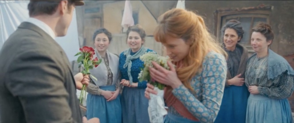 Si j’ai fait allusion à l’enfance de Jean Renoir, c’est pour dire qu’il était chez lui à Montmartre où il était né en 1894. On ne choisit pas de reconstituer une époque pour rien. On le fait pour en livrer ce que l’on en sait, en donner sa vision, son interprétation. Pour cela, il faut reconstituer la matière de cette époque. À l’aube du XXe siècle, on ne parlait pas le français moderne et policé des acteurs de Montmartre quand on était du populo de la Butte, il suffit de réécouter les Archives de la parole conservées à la BNF ou simplement, encore une fois, French cancan. On n’avait pas, non plus, l’apparence physique des parisiens de la série, il suffit de regarder des photos d’époque et surtout les films des frères Lumière. D’autant qu’en ces temps d’immigration massive à Paris, seul un tiers des habitants était natif de la Capitale (3). On aurait donc pu s’attendre à de forts contrastes d’origines régionales en fonction des métiers et des lieux. On aurait pu aussi, comme le fit Renoir, choisir de ne jamais montrer le Sacré-Cœur à l’époque inachevé et dont l’historienne Mathilde Larrère dit : « le choix d’ériger l’édifice sur la butte Montmartre, où commença le 18 mars 1871 la Commune, où elle s’acheva dans un bain de sang à la fin mai, tenait de la provocation – la même basilique au fond du XVIe arrondissement n’aurait pas eu le même sens ».