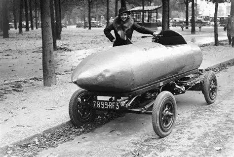 La voiture électrique d’Arsène (en haut) inspirée par La Jamais Contente (en bas) qui battit le record de vitesse de 1899 en dépassant les 100km/h