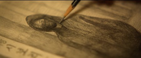 Yun-su ne possède qu’une arme pour se défendre : son talent d’artiste. Elle exécute de mémoire un très fidèle portrait au crayon de l’inconnu à la capuche. Par la suite, les dessins d’individus suspects seront pour elle les preuves de son innocence. Preuves dérisoires parce qu’elles seront prises par les enquêteurs pour ce qu’elles sont, des dessins, c’est-à-dire des images approximatives, dépendantes de la volonté et des capacités de leur auteure. Ce qu’il faut pour produire une preuve recevable, c’est un outil mécanique ou électronique qui enregistre sans interpréter, qui saisit la vérité telle qu’elle est, du moins le croit-on. Or justement – et l’idée est formidable – choisir le dessin, pratique archaïque, lente et exigeante, est un pied de nez à la technologie. Ce qui nous est ici soufflé est que le dessin peut s’avérer bien plus efficace qu’un dispositif photographique, parce que, contrairement à celui-ci, il requiert une observation soutenue, rigoureuse, inquisitrice de ce qu’il y a à reproduire.