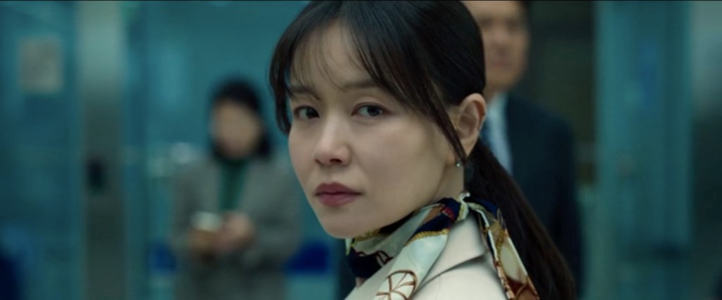 La relation entre les deux femmes évolue dès que Yun-su entreprend de régler sa part du marché et donc de tuer celui que Mo-eun lui a désigné. Comme la première fois, le réalisateur nous fait croire qu’elle a vraiment tué sa victime, puis, très vite après, qu’elle l’a raté puis, un peu plus tard, que la victime est tout de même décédée. Comme la première fois, un personnage couvert d’un vêtement de pluie à capuche, l’observe à l’extérieur du bâtiment. À partir de ce moment, il devient évident que d’autres personnages s’immiscent dans le récit. Ce sont eux qui vont en précipiter la fin tandis que le procureur se laisse peu à peu déborder et que, pour Mo-eun, l’hôpital succède à la prison. Cette complexification du récit lui fait perdre sa belle simplicité originelle. Alors que toute la tension tenait dans l’échange, dans ce rapport éprouvant auquel les deux femmes s’étaient soumises, le voici noyé dans un ensemble plus vaste de relations, Mo-eun perd de son mystère, elle finit par s’allier à Yun-su contre l’adversaire invisible qui les menace.