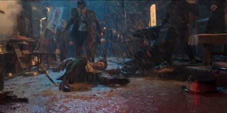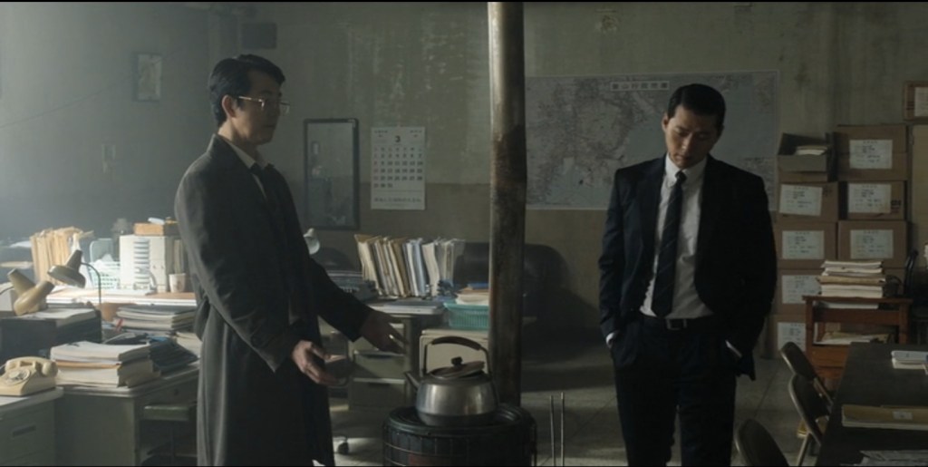 Quoi qu’il en soit, la plus grande qualité de Made in Korea reste son esthétique, inventive sans être révolutionnaire, où les lumières, les couleurs et les contrastes traduisent bien plus que l’environnement urbain. L’obsession de Jang à faire éteindre les lumières dans la grande salle de travail a une valeur symbolique. Il se prive, lui et son équipe, de lumière (réelle) pour comprendre ce qui se joue dans l’ombre (symbolique). Mais au-delà, on constate les effets de couleurs sont principalement liés à Jang Geon-young et les relier à ses rires comme à l’incendie du temple au cours d’une cérémonie chamanique lui confère une fonction plus vaste que celle de simple procureur. Face à un Bae Ki-tae reptilien, pur produit d’une dictature corrompue, il brandit les seules armes possibles : le rire et la folie.
